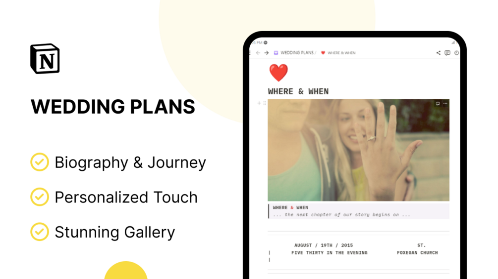 As you embark on this beautiful journey together, our Wedding Plans template offers you the perfect platform to share your love story and upcoming wedding celebrations. Personalize it to reflect your style and let your friends and family join in the anticipation of your special day. Let the magic begin as you plan your dream wedding with ease and joy! ππ